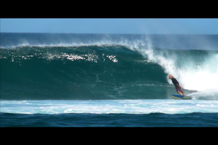 Joaquin - manos atras y a entubar, toma desde la camara en la cola de la tabla